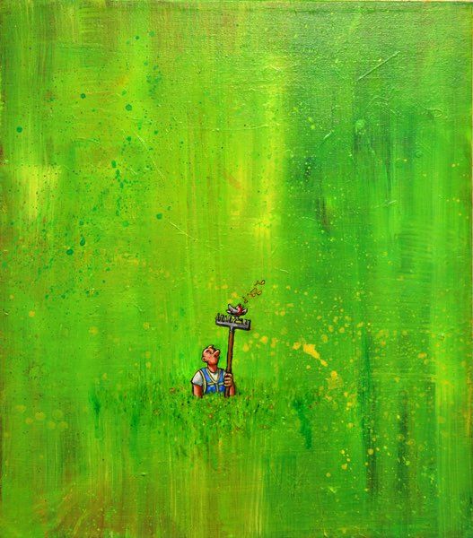I carried on with the same theme as in earlier series, "Small Revelations". Painting abstract and drawing up stories for the little people is a sweet combination for me!